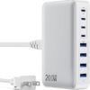 Multiport USB-C & A Charging Station: Boasting to charge up to 10 devices at once, this versatile charging block features 5 USB-C ports and 5 USB-A ports. The dedicated USB-C port powers newer electronics like laptops, while the legacy USB-A ports support older devices. Unlike most chargers with false advertising and outputs that slow down when multiple ports are used.